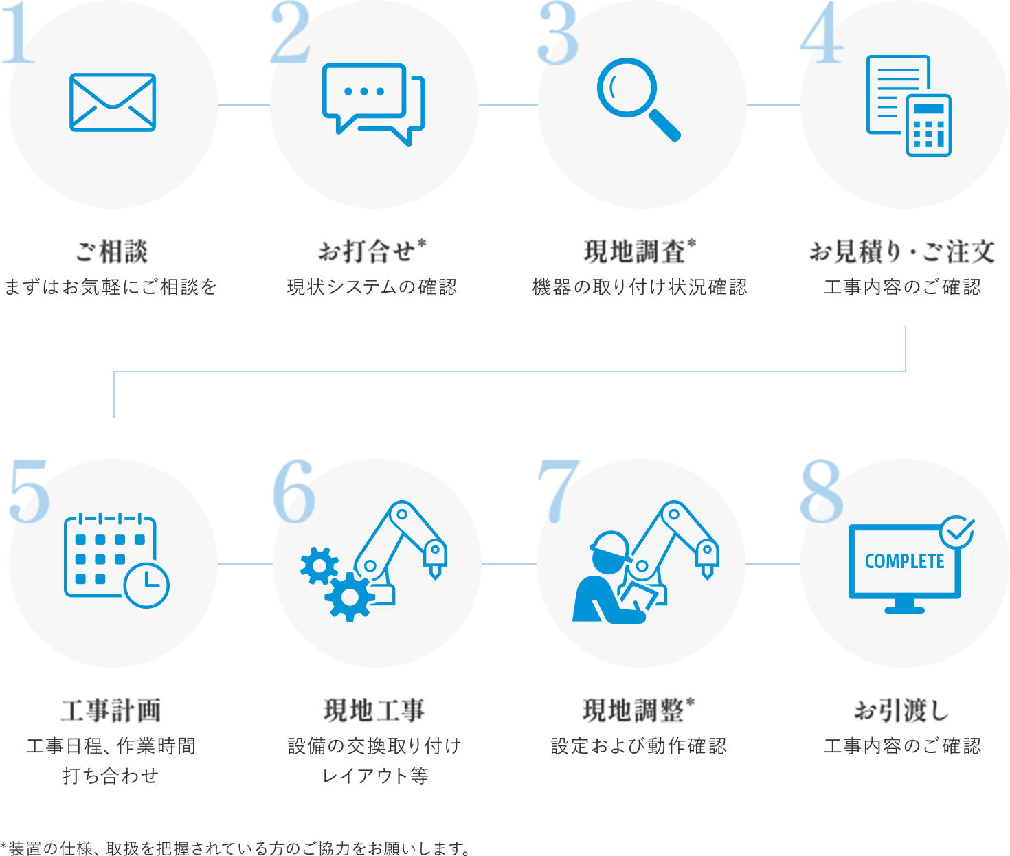 製品販売にとどまらず、ハードウェア・ソフトウェアのリニューアル工事も実施。総合的なエンジニアリングにより、製品選定・設計から交換工事および試運転調整まで、幅広いリニューアル工事に一貫して対応することができます。